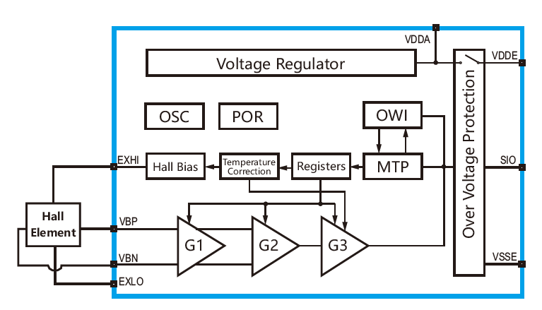JHM9000 is a signal conditioning chip designed for GaAs Hall elements, which can realize the function of linear Hall sensor with proportional voltage output.